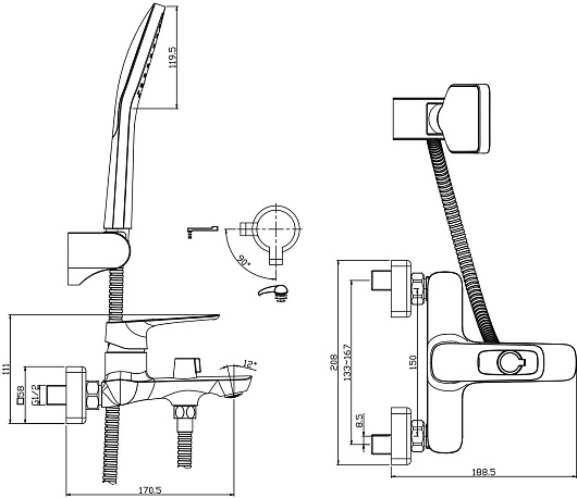 - Длина душевого шланга: 1.5 м.