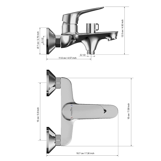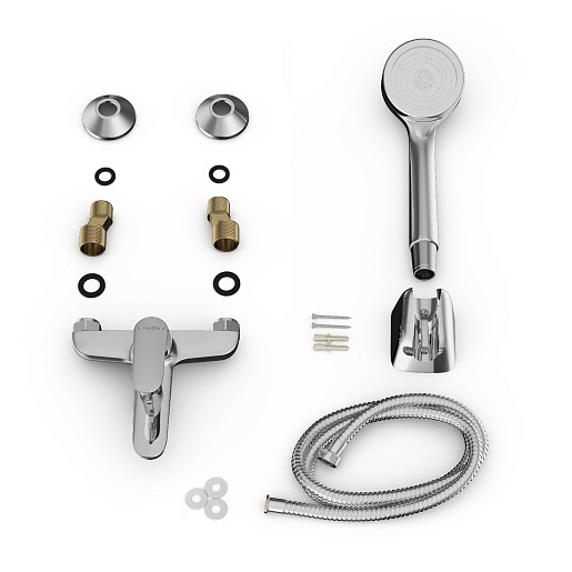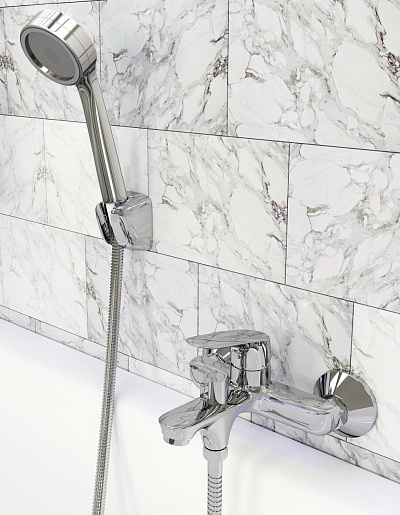 - небольшой фиксированный излив с душевой лейкой удобно крепится к стене.