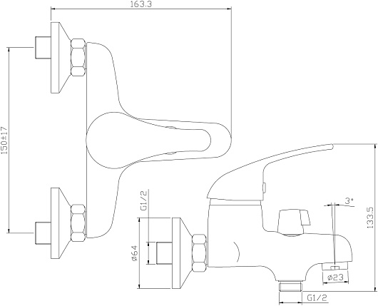 В комплекте: смеситель, душевая лейка, душевой шланг, держатель лейки, комплект эксцентриков с отражателями.