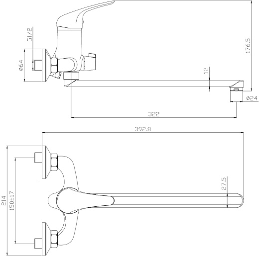 Универсальный смеситель для ванны Rossinka Y40-32.