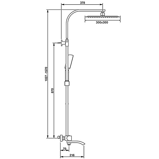 - Вылет верхнего душа: 37.8 см.