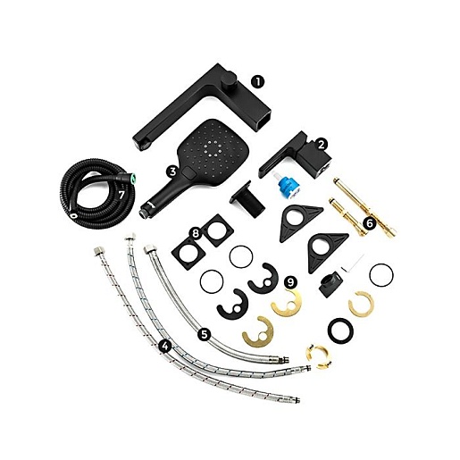 - Комплект из латуни износостойкий, устойчивый к ржавчине и известковому налету, долговечный и простотой в уходе.
