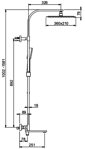 - Размер верхнего душа: 36 см.