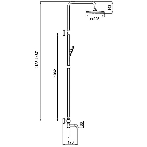 - Размер верхнего душа: 22.5 см.