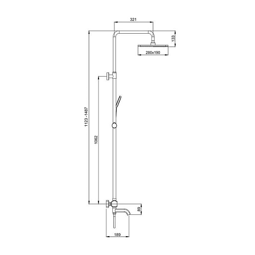 - Вылет верхнего душа: 33 см.