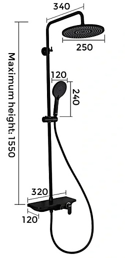 - Размер верхнего душа: 25.4 см.