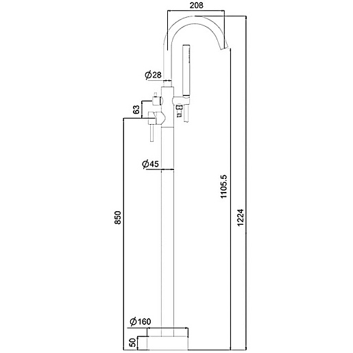 - Высота излива: 110.55 см.