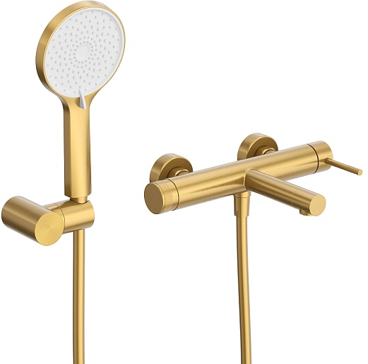 Комплектация: смеситель, душевая лейка, душевой шланг, держатель для душевой лейки.