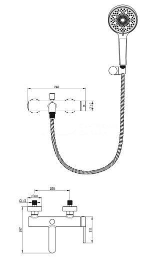 - Оснащение: душевая лейка / душевой шланг.