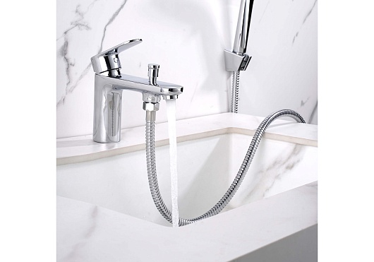- Встроенный девиатор автоматически переключает поток с душа на излив при закрытии воды.