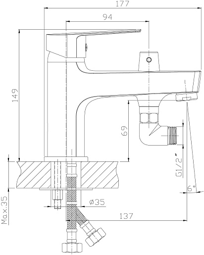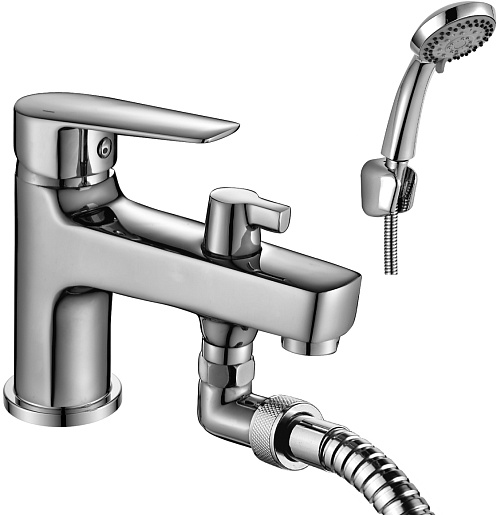 В комплекте: смеситель, душевая лейка, душевой шланг, держатель лейки, комплект гибкой подводки.