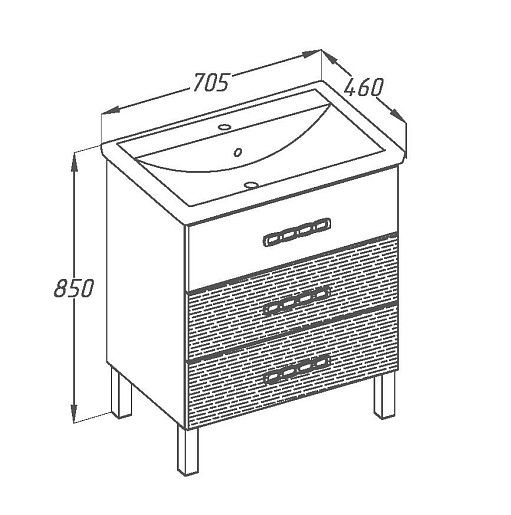 Описание: напольная тумба с тремя выдвижными фасадами. В комплект входит керамическая раковина Фостер 70.