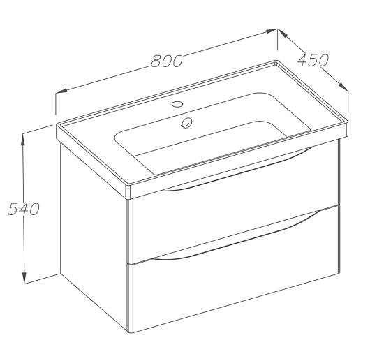- Тумба под раковину подвесная Элеганс 80 с двумя выдвижными фасадами.