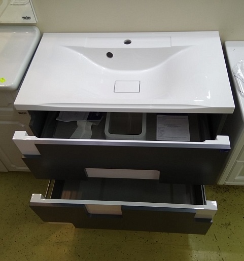 - Тумба под раковину подвесная Санторини 100 с двумя выдвижными фасадами.