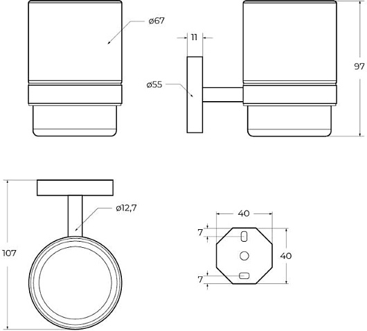 Cezares Стакан для зубных щеток Relax RELAX-TUMS-NOP черный матовый