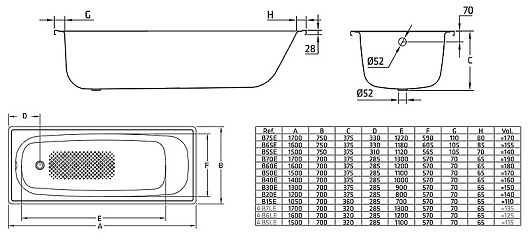 Стальная ванна Europa 130/70 B30E22001 без опоры