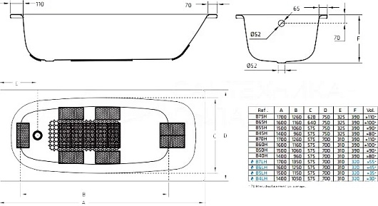 BLB Стальная ванна Universal 150/70 B50HAH001 с шумоизоляцией с опорой S30002523250700