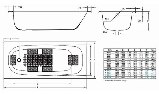 Стальная ванна Universal HG 170/70 B70HAH001 с шумоизоляцией без опоры
