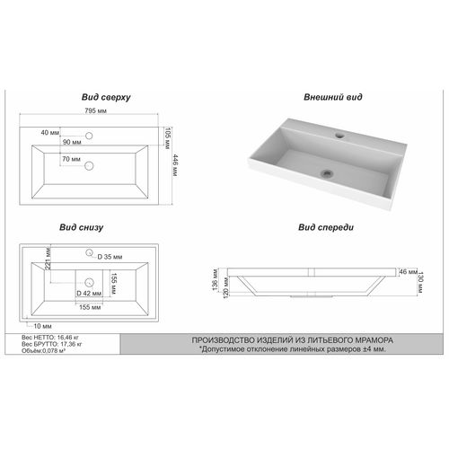 - Раковина Слим 80, белая