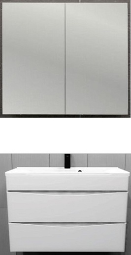 Описание: влагостойкое зеркальное полотно, шкафчик, полки.