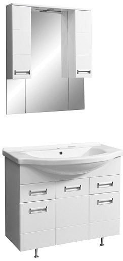 Описание: влагостойкое зеркальное полотно, шкафчики, полки, подсветка.
