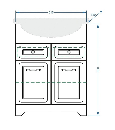- Тумба под раковину Кармела 65 с выдвижными фасадами и дверками, доводчики, арт. SP-00000178