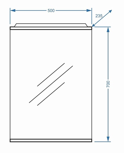 Описание: влагостойкое зеркальное полотно, полка, подсветка.