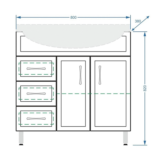 - Тумба под раковину Концепт 80 с распашными фасадами и ящиками, доводчики, арт. SP-00000129