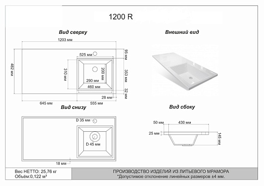 - Раковина Мадлен 120 правая