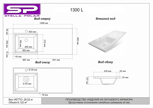 Раковина Мадлен 130 L