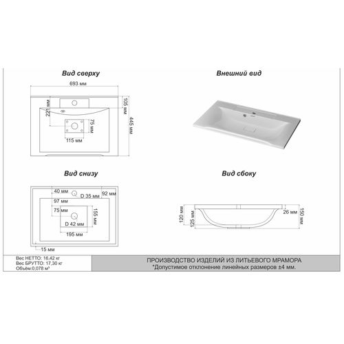 - Раковина Комфорт 70, белая