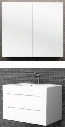 Описание: влагостойкое зеркальное полотно, шкафчик, полки.
