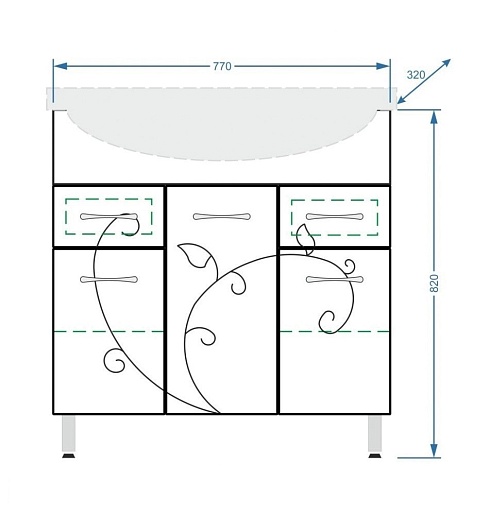 - Тумба под раковину Фантазия 80 с распашными фасадами и ящиками