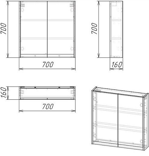 - Размер (ШxВxГ): 700x700x160 мм.