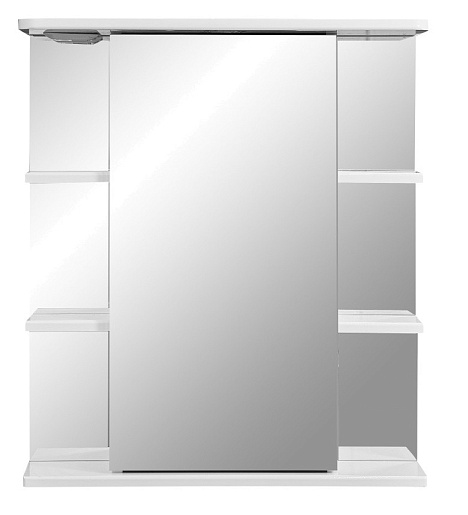 Описание: влагостойкое зеркальное полотно, шкафчик, открытые полки, подсветка.
