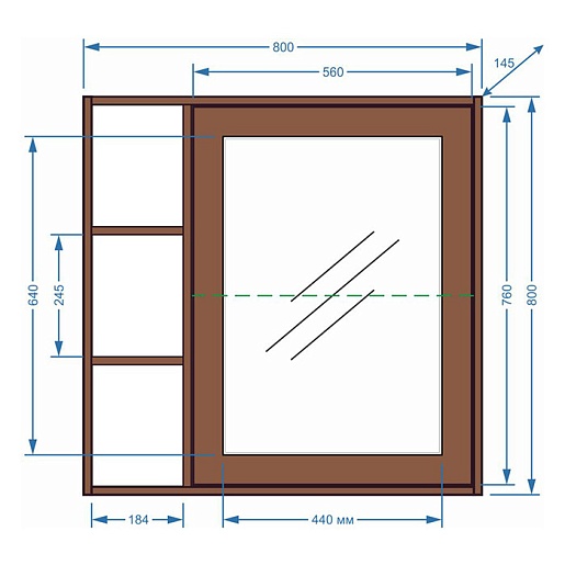 Описание: влагостойкое зеркальное полотно, полочки, шкафчик.