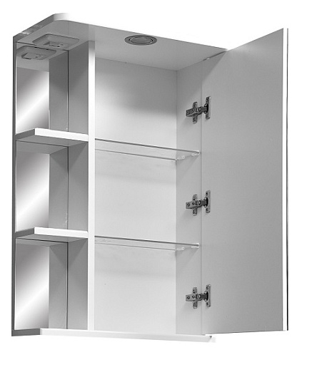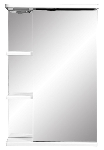 Описание: влагостойкое зеркальное полотно, шкафчик, открытые полки, подсветка.