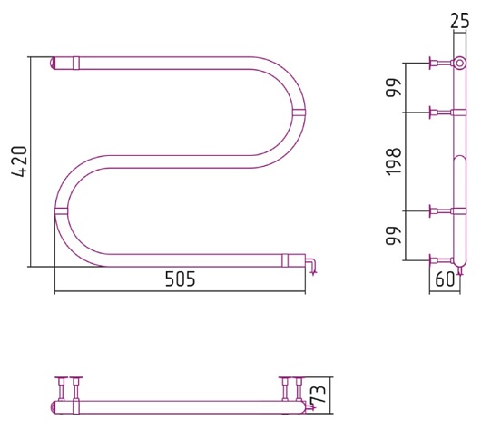 Стилье Полотенцесушитель электрический №2 S-образный 420х500