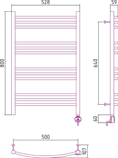 Стилье Полотенцесушитель электрический Формат 10 ТП 800х500
