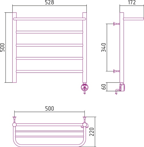 Стилье Полотенцесушитель электрический Формат 20 ТП 500х500