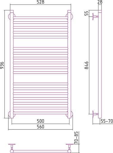 Стилье Полотенцесушитель Универсал-53 1000х500