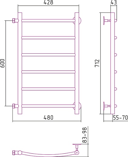 Стилье Полотенцесушитель Версия-Б2 600х400