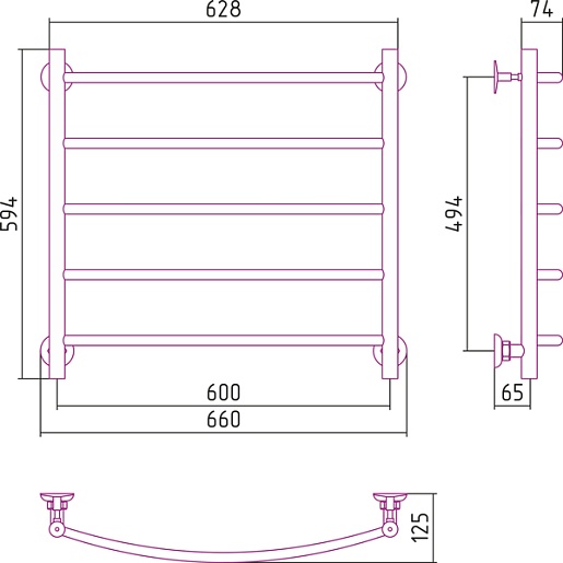 Стилье Полотенцесушитель Версия-Н2 600х600