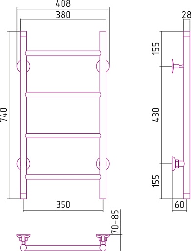 Стилье Полотенцесушитель Версия-НВ 740х350