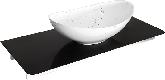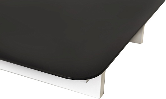 Сверху стеклянная столешница из закаленного стекла 4 мм, окрашенная в черную эмаль. Снизу столешница из МДФ в пленке, пленка направлена вниз.