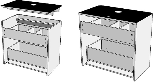 - С отверстиями под монтаж накладной раковины и смесителя.