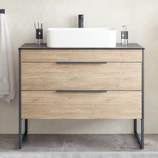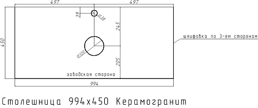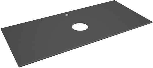 Столешница из керамогранита обеспечивает устойчивость к высокой влажности и перепадам температур, что исключает возможность появления плесени и грибка. Керамогранитный сплав обладает высокой прочностью и износостойкостью. Гладкая матовая поверхность и текстура, напоминающая цвет темный графит является универсальным решением практически для любого интерьера. Столешница оснащена отверстиями для смесителя и слива. Керамогранит состоит из натуральных компонентов, что исключает наличие вредных химических и токсических примесей
