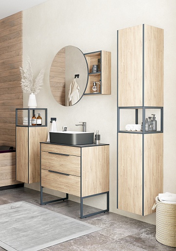 Столешница из керамогранита обеспечивает устойчивость к высокой влажности и перепадам температур, что исключает возможность появления плесени и грибка. Керамогранитный сплав обладает высокой прочностью и износостойкостью. Гладкая матовая поверхность и текстура, напоминающая цвет темный графит является универсальным решением практически для любого интерьера. Столешница оснащена отверстиями для смесителя и слива. Керамогранит состоит из натуральных компонентов, что исключает наличие вредных химических и токсических примесей