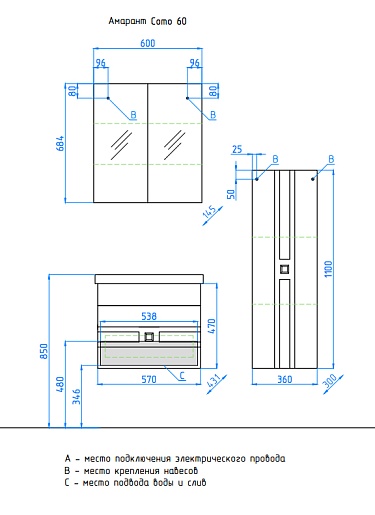 - 2 выдвижных ящика (один в одном) на доводчиках Hettich