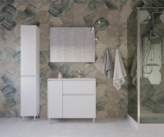 В комплекте: тумба, раковина, зеркальный шкаф, крепеж, ножка (4 шт.).